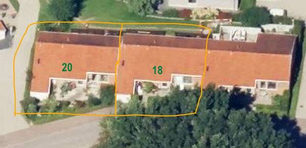 2 boliger type A med 2 værelser (75,8 m2) og udhus (6 m2)
